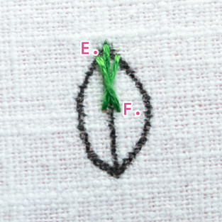 4. Repeat this from the other side. Bring needle up at Point E (just to the left of and below Point A). Insert your needle at point F, (just below Point B) and pull through to the back.